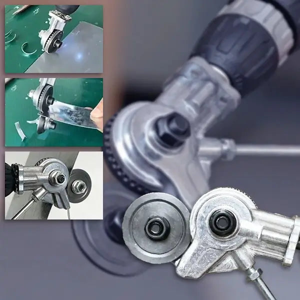 Transformez votre perceuse en un puissant coupeur de tôle grâce à cet accessoire portable et facile à utiliser.